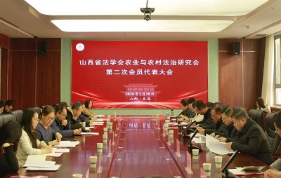 山西省法学会农业与农村法治研究会是山西省法学会领导下的学术研究机构,2018年依托山西农业大学公共管理学院成立。2026年1月10日上午,研究会第二次会员代表大会暨理事会换届会议在山西农业大学太谷校区顺利召开。山西省法学会党组成员、秘书长秦伟,研究部部长安君,省律协农委主任裴建军律师等省法学会、省律协领导及各位研究会会员代表参加会议。